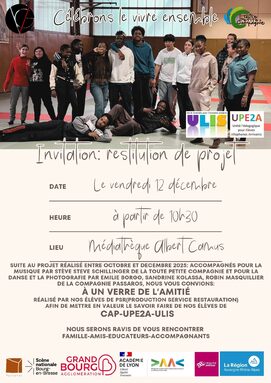 Par Admin LM, publié le lundi 8 décembre 2025 16:50 - Mis à jour le lundi 8 décembre 2025 16:50Nous avons le plaisir de vous convier à la restitution du projet « Célébrons le vivre ensemble », mené par les élèves du lycée Gabriel Voisin en collaboration avec nos intervenants en danse et musique. -
