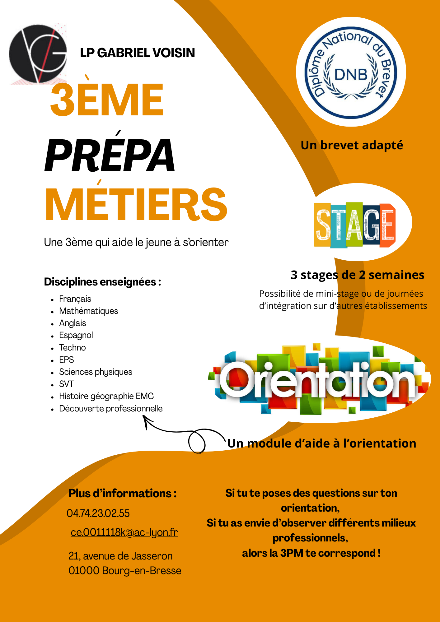 Les élèves, avec l’accord de leurs représentants légaux, souhaitant entrer dans la troisième « prépa-métiers » du LP Voisin, effectueront une demande auprès du chef d’établissement de leur collège en fin de quatrième. Après proposition du conseil de classe du troisième trimestre de quatrième, une commission départementale statuera sur chacune des candidatures.